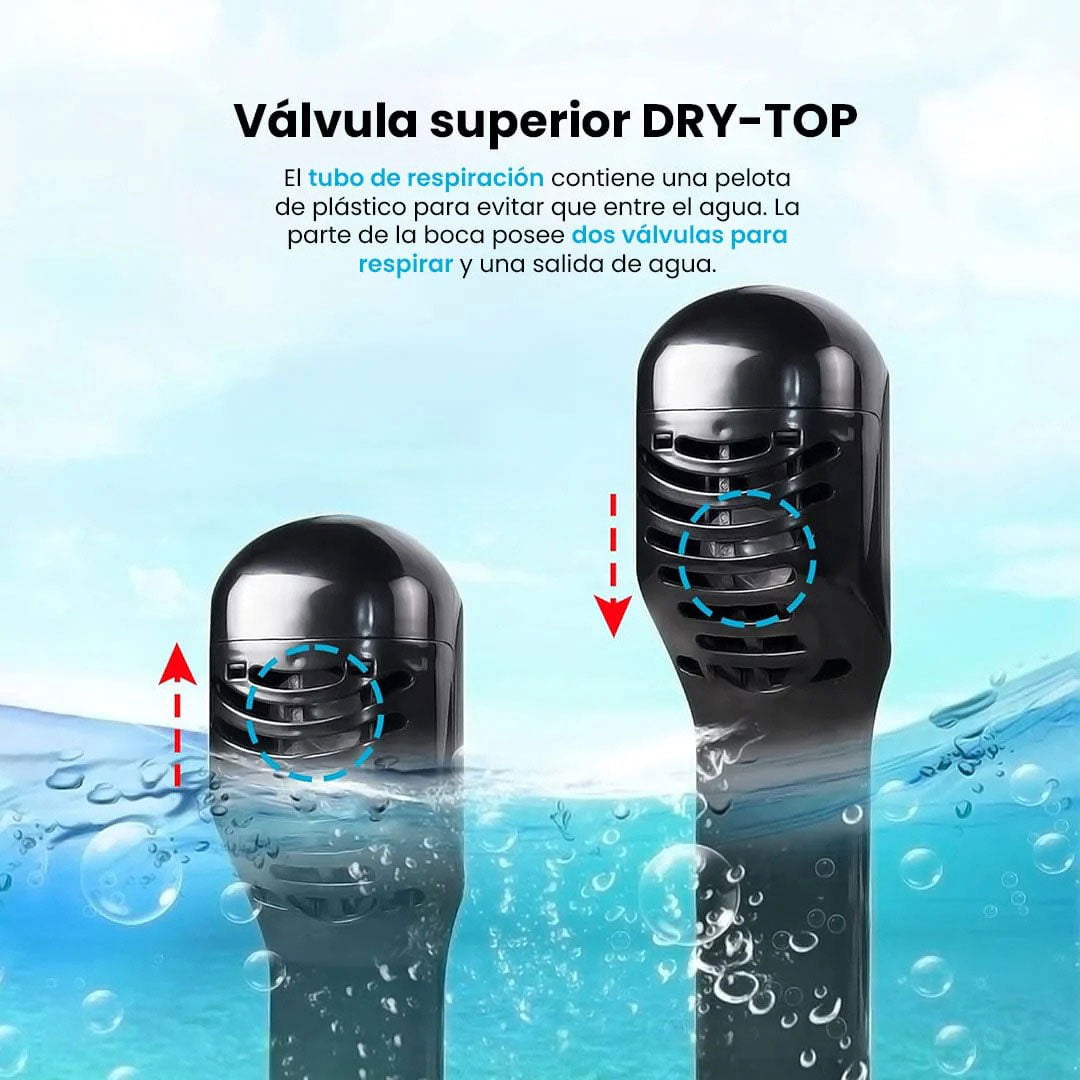 Su diseño ergonómico con campo visual de 180°, sistema antivaho y dry-top (bloqueo de entrada de agua) la hace perfecta para mar, piscina o actividades recreativas en el agua. Ideal para niños y adultos que quieren disfrutar del snorkel de forma cómoda, segura y sin interrupciones.