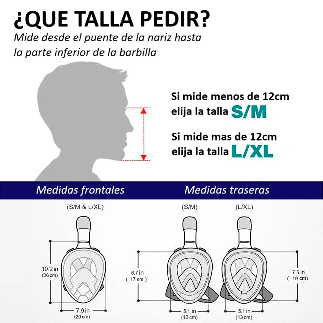 🌊La Careta Snorkel® es una máscara de snorkel de rostro completo que permite respirar de forma natural por la nariz y boca, sin necesidad de tubo externo incómodo.